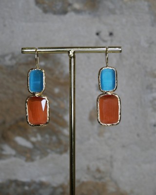 Boucles d'oreilles duo serties de cristaux cat-eyes.
