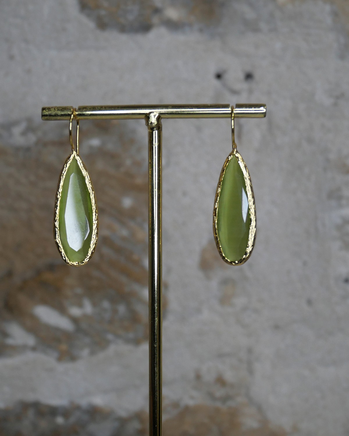 Boucles d'oreilles duo serties de cristaux cat-eyes.