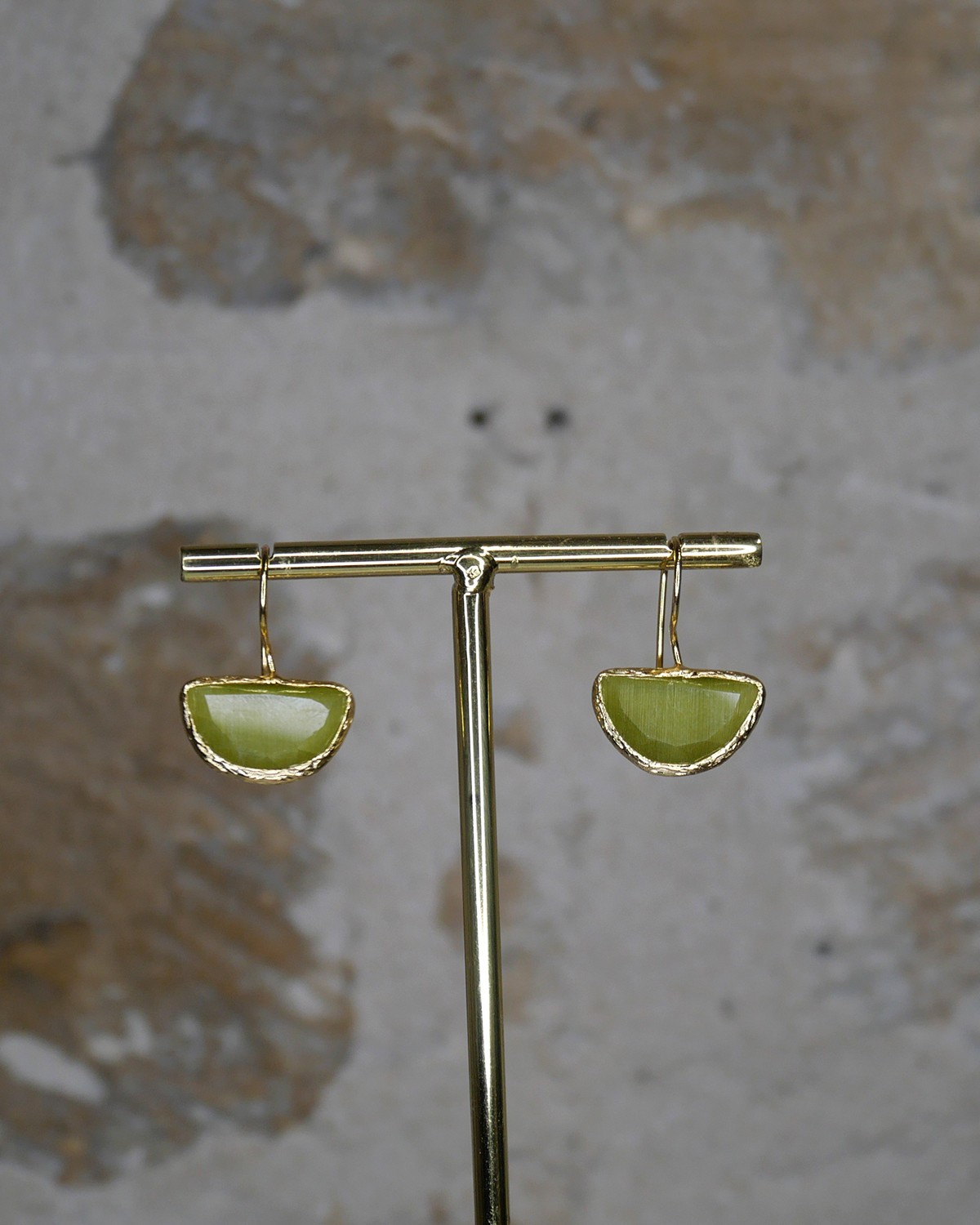 Boucles d'oreilles duo serties de cristaux cat-eyes.
