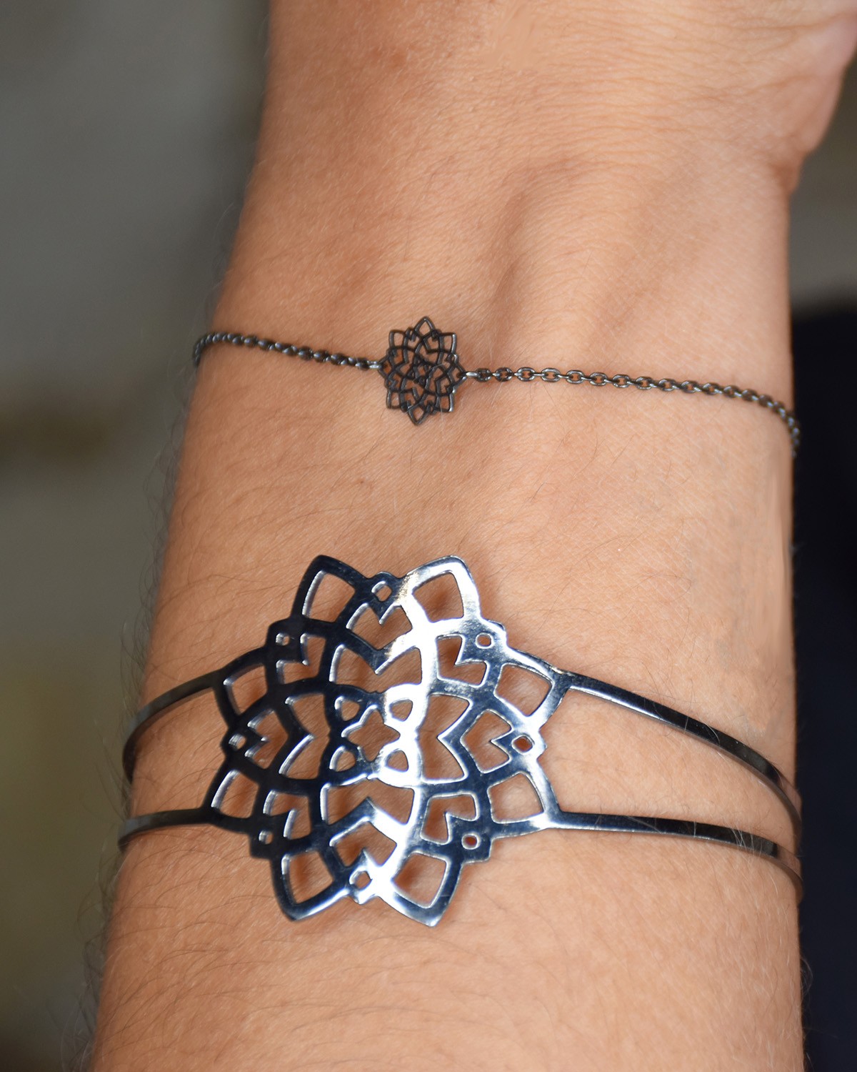 Des bijoux éco-responsables en argent recyclé 925. Son emblème, une rosace qui nous fait voyager vers des multiples univers, les portes voûtées formant le "A" dans le logo ACH CHAJAI PARIS, sont liées et entrelacées représentant un sceau d'authenticité, Une invitation à découvrir diverses cultures, représentant La Femme aux origines plurielles et fière de l'être.